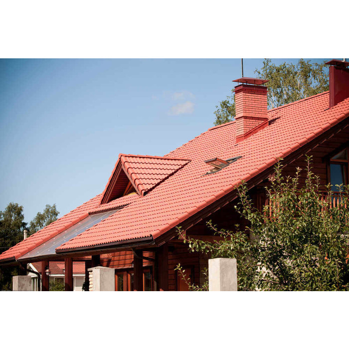 Металлочерепица Grand Line Kvinta Uno (Квинта Уно) 0,45 Полиэстер RAL 3009 Оксидно-красный